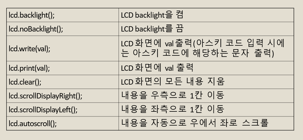 lcd.print("Hello Everyone"); // lcd 화면에 출력