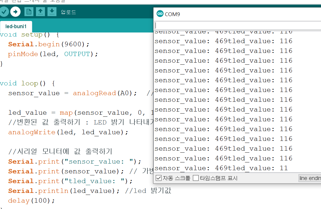 가변저항값 확인하기